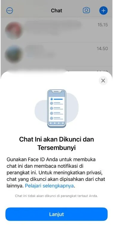 - For your information, Lock Chat WhatsApp ini membutuhkan sistem keamanan pemindai sidik jari atau pemindai wajah yang terdapat di ponsel. Jadi, pastikan telah mengaktifkan sistem keamanan tersebut di ponsel kamu sebelum mengunci chat WhatsApp.
