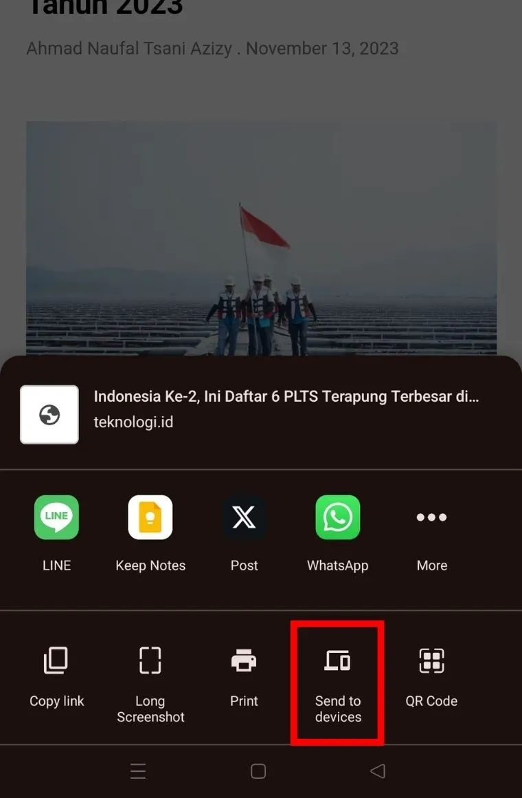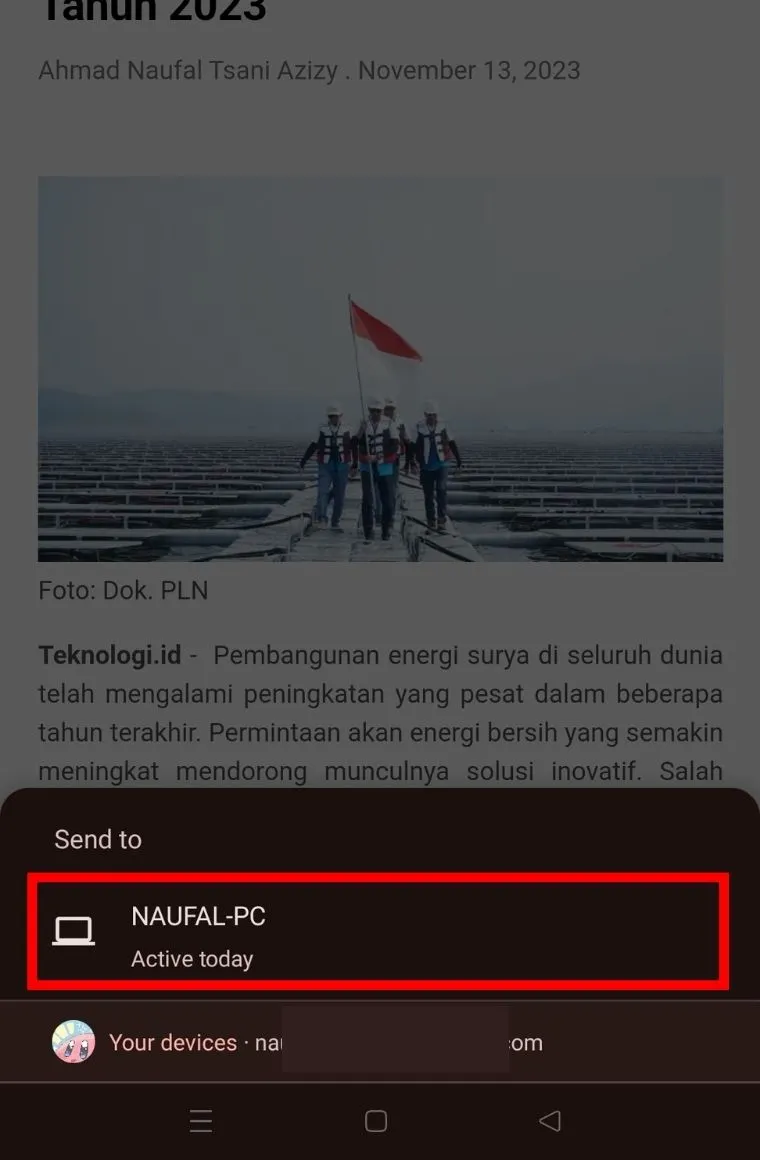 Pilih opsi "Kirim ke perangkat" atau "Send to device" dari menu yang muncul.