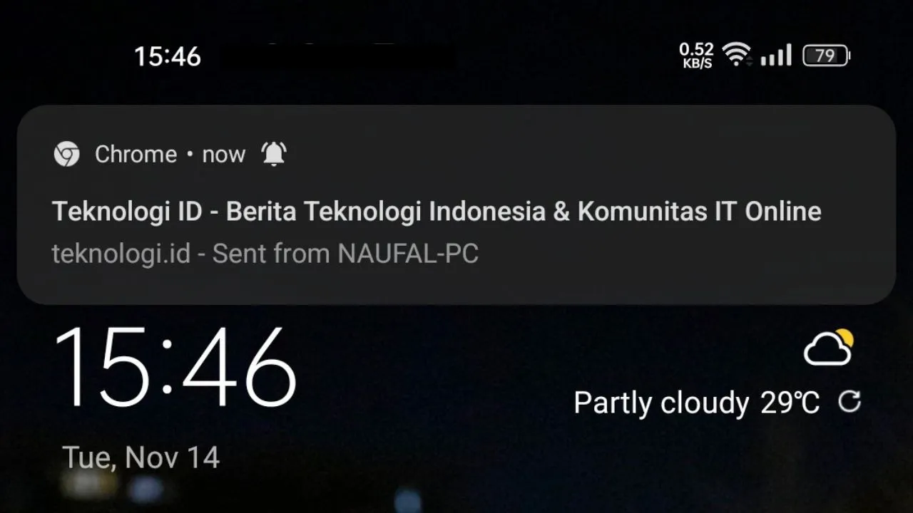 Setelah memilih perangkat smartphonemu, Google Chrome akan mengirim notifikasi ke smartphonemu bahwa tab tersebut telah dibagikan. Kamu dapat membuka tab tersebut dengan mengklik notifikasi tersebut.