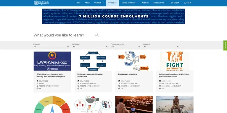 Merupakan platform interaktif yang diluncurkan pada 2017 oleh World Health Organization, OpenWHO di-design untuk pekerja kesehatan profesional. Kelas dan kursus yang tersedia bertujuan untuk men-transfer informasi tentang 'life-saving' kepada perkerja garis depan (frontliners). Namun kelas dan kursus tersebut tersedia gratis untuk siapa saja yang ingin mengikutinya.