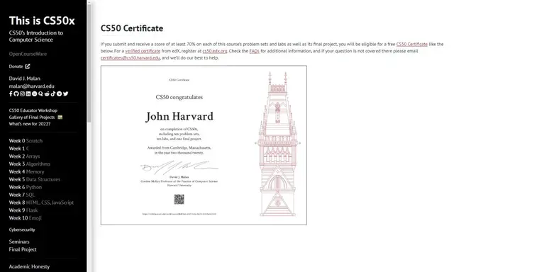 3. Kursus CS50 (Harvard OpenCourseWare)