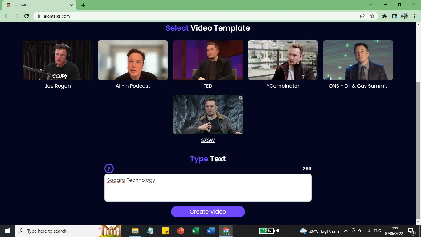 Website tersebut juga menawarkan berbagai jenis template video Musk. Kamu bisa membuat orang terkaya di dunia itu bercakap semaumu dengan layar belakang podcast Joe Rogan hingga panggung konferensi TED.