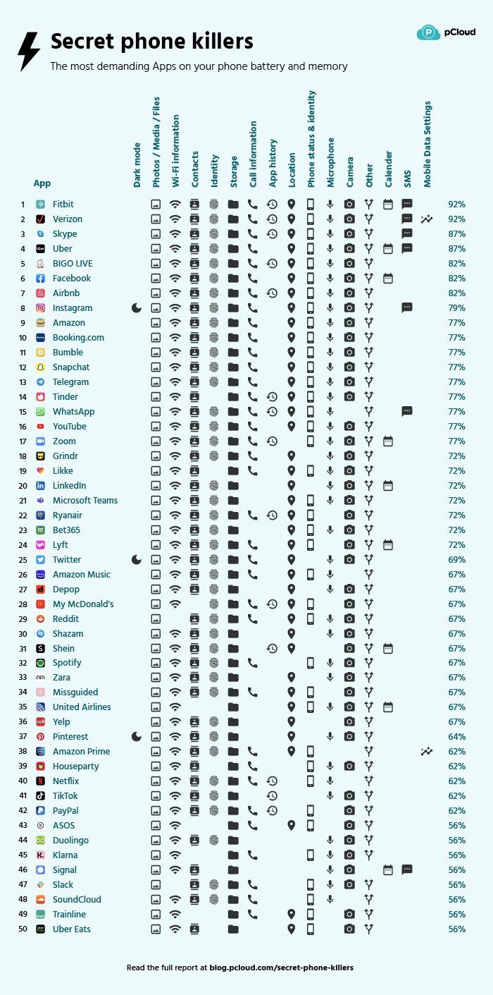 Di Indonesia sendiri, rata-rata penggunaan HP (handphone) itu sekitar 4-10 jam per hari. Selain itu, tentu aplikasi saat ini mulai beragam hadir mulai dari media sosial, hiburan, belanja, hingga pekerjaan, semuanya bisa diakses dengan genggaman saja. Dalam artikel kali ini, akan dibahas tentang aplikasi yang paling sering menghabiskan baterai dan memori berdasarkan data dari PCloud.
