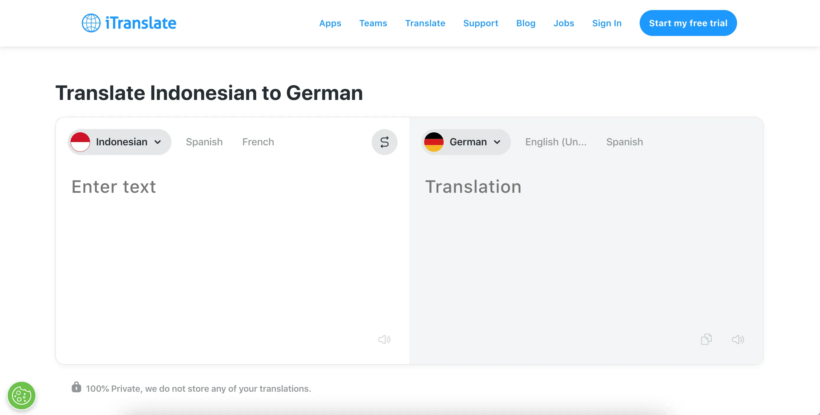 Terakhir, ada iTranslate dikembangkan oleh perusahaan Sonico Mobile yang mendukung lebih dari 100 bahasa dapat membantu untuk menerjemahkan tulisan, situs web atau kata-kata pencarian dengan makna bahkan konjugasi kata kerja, dan melalui ucapan. iTranslate juga hadir untuk beragam jenis sistem operasi seperti Windows, iOS, Mac, Google Play, dan Kindle fire.