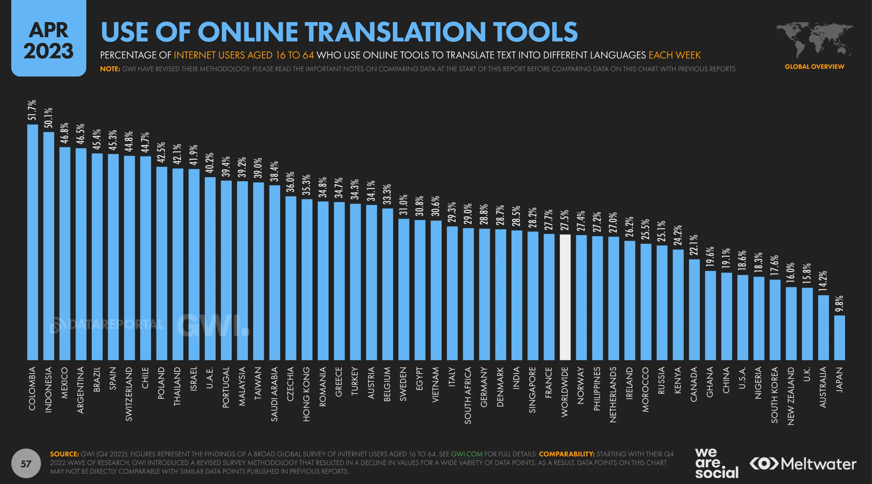 Hasil Survei We Are Social dalam Penggunaan Translate Online. Foto: We Are Social