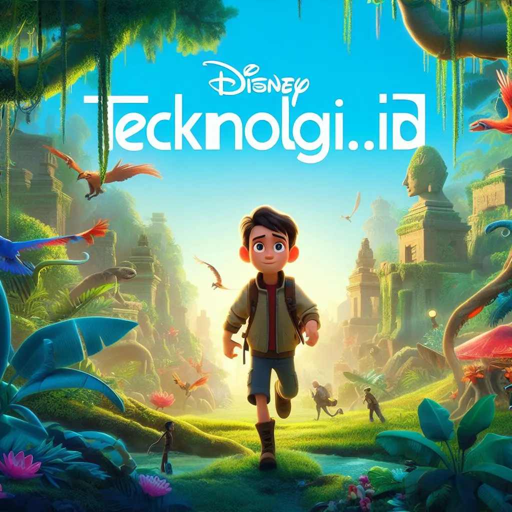 - "A Disney Pixar-style poster titled ‘TEKNOLOGI.ID’ of a