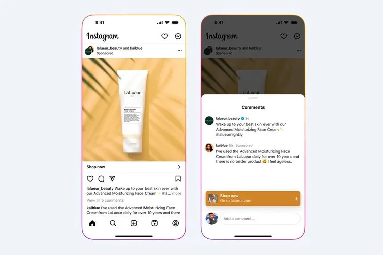 Dengan fitur ini, kreator bisa menulis testimoni pada postingan feed atau Reels milik suatu merek sebagai bagian dari Partnership Ads, menggantikan cara endorse yang sebelumnya hanya bisa dilakukan melalui postingan khusus.