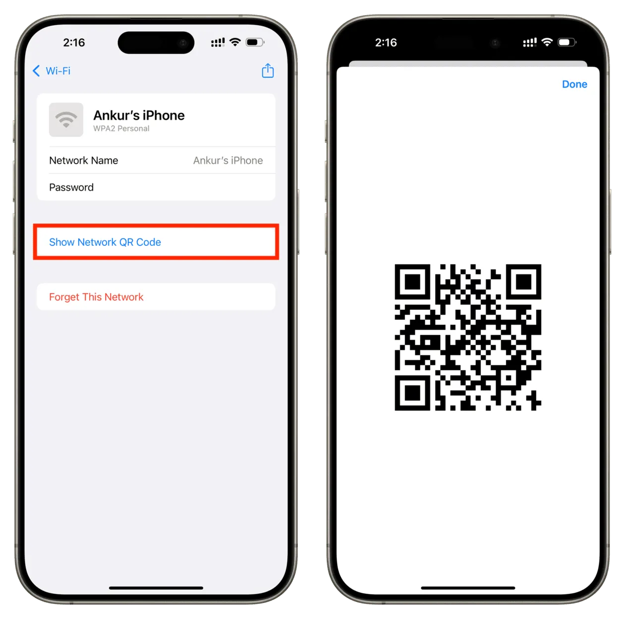- Ketuk "Show Network QR Code"