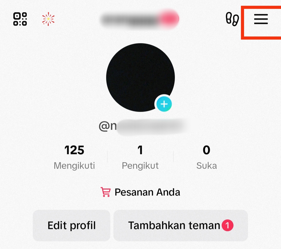 1. Buka akun TikTok, lalu pilih tanda tiga garis di pojok kanan atas.