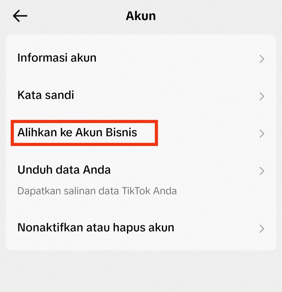 2. Pilih menu "Pengaturan dan privasi". Selanjutnya akan muncul beberapa pilihan. Klik pada bagian "Akun", lalu pilih "Alihkan ke Akun Bisnis".