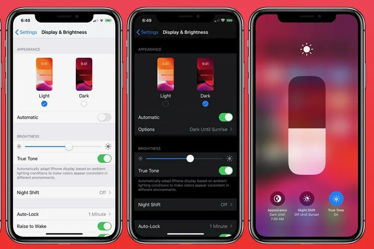 Dengan kata lain, menggunakan Dark Mode pada layar OLED sama dengan lebih sedikit daya baterai yang dikonsumsi, memungkinkan Anda untuk memperpanjang umur baterai Anda, semakin gelap layarnya. Karena itu, menggunakan dark mode pada iPhone yang disebutkan di atas adalah metode yang sangat baik untuk menghemat masa pakai baterai dan memperpanjang masa pakai sekali pengisian daya. Buka Display & Brightness di pengaturan IPhone Anda untuk mengaktifkan Dark Mode. Halaman Options juga menawarkan kesempatan untuk memprogram peralihan otomatis antara Light dan Dark.
