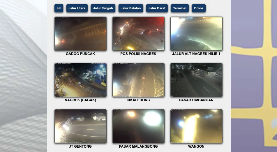 Salah satu contohnya adalah jalur Nagreg, Kabupaten Bandung, Jawa Barat. Untuk menggunakan layanan ini, cukup kunjungi tautan http://rttmc.dephub.go.id/rttmc/livecctv. Dengan begitu, kamu bisa selalu update dengan kondisi lalu lintas terbaru dan memilih rute terbaik untuk perjalananmu.