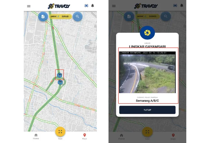 Untuk mengakses layanan CCTV live streaming di aplikasi Travoy, pengguna cukup membuka menu "Maps" yang terdapat pada halaman awal aplikasi. Kemudian, klik ikon kamera CCTV yang muncul pada ruas jalan tol yang ingin dipantau dan pengguna dapat melihat siaran lalu lintas terkini. Dengan adanya fitur ini, pengguna dapat memperoleh informasi tentang kemacetan lalu lintas di jalan tol dengan lebih mudah dan cepat.