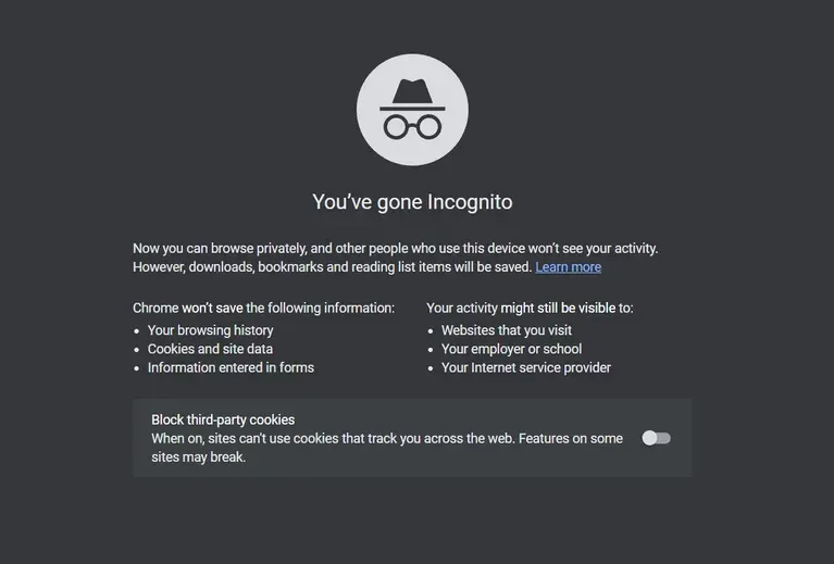 diisolasi dari sesi utamanya dan data pengguna. Untuk beralih ke Mode Incognito