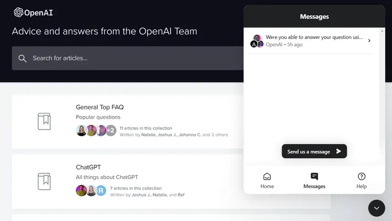 Tim dukungan ChatGPT akan menyarankan beberapa