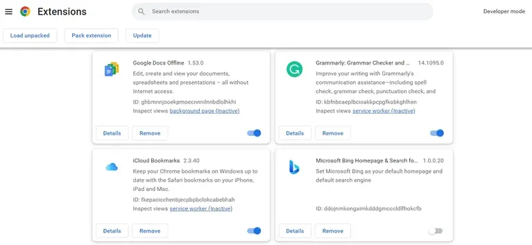 Setelah mengenali ekstensi yang bermasalah, klik tombol hapus yang tersedia.