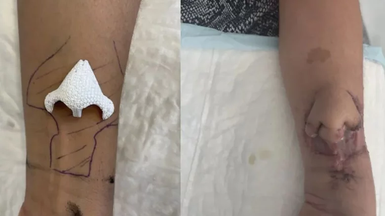 Setelah kehilangan hidungnya karena kanker pada tahun 2013 dan menjalani beberapa operasi rekonstruksi hidung yang gagal, seorang wanita Prancis baru-baru ini menjadi orang pertama yang menumbuhkan hidung baru – di lengannya. Operasi perintis melihat struktur hidung yang dicetak 3D ditanamkan ke lengan bawah pasien, yang kemudian menumbuhkan kulit dan akhirnya ditransplantasikan kembali ke wajahnya. Industri Percetakan 3D melaporkan bahwa struktur untuk menumbuhkan hidung baru dibuat oleh spesialis cangkok tulang CERHUM, menggunakan biokeramik biokompatibel di mana porositas struktur dapat disesuaikan.