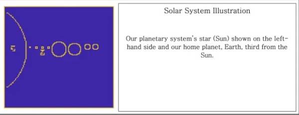 NASA juga telah memasukkan alamat tata surya di pesan BITG. Representasi digital tersebut menampilkan matahari dan planet-planet tata surya kita berbaris, dengan panah kecil untuk menandai Bumi agar para alien mengetahui lokasi persis bumi.