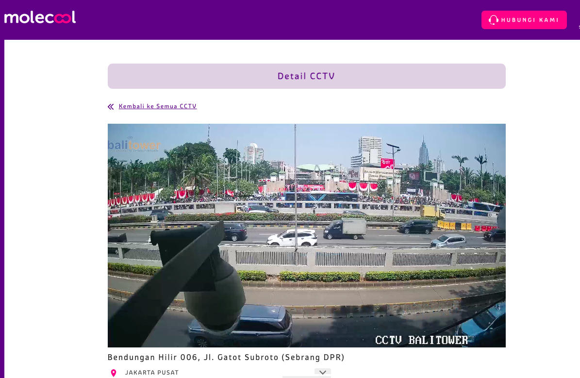 Bali Tower memiliki jaringan CCTV yang tersebar di seluruh Jakarta dan Bali. Kamu bisa memanfaatkan aplikasi Molecool untuk mengakses tayangan CCTV ini. Setelah mengunduh dan masuk ke aplikasi, kamu bisa langsung memantau lokasi-lokasi seperti Bendungan Hilir (sekitar Gedung DPR RI), Pospol Merdeka Utara, Monas Barat, Monas Utara, Pospol Merdeka Barat, dan Gambir.