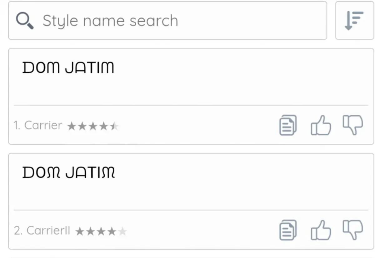 - Pilih font bernama "Carrier", yang memiliki tampilan mirip dengan font "Dom Jatim."