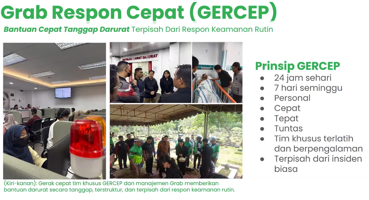 Grab menegaskan bahwa keselamatan mitra adalah prioritas utama. Gercep dihadirkan agar para pengemudi tidak merasa sendirian, terutama saat menghadapi situasi kritis.