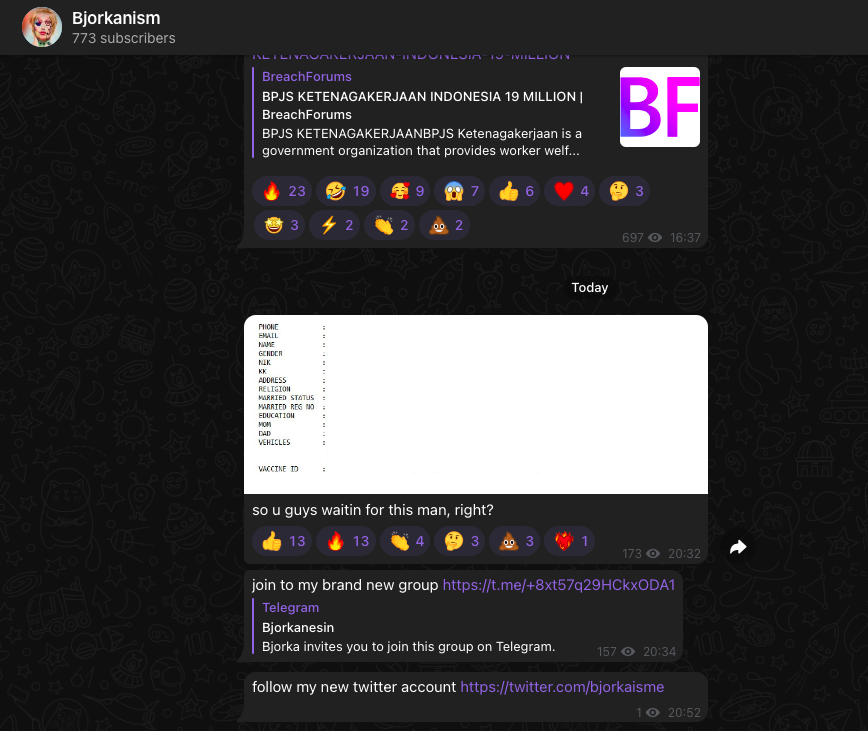 Baca juga: Kembali Beraksi, Bjorka Bocorkan 19 Juta Data yang Diduga Milik BPJS Ketenagakerjaan