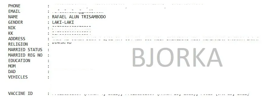 Bjorka menjual data tersebut dengan harga US$10.000 atau setara dengan Rp154 juta dan hanya menerima pembayaran dalam bentuk Bitcoin.