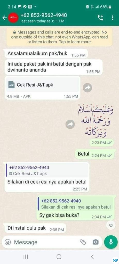 Namun saat ini sedang marak terjadi sebuah modus penipuan online baru, yakni dengan cara mengaku sebagai kurir palsu dan meminta penerima paket agar membuka file .apk 'Cek Resi' yang dikirim via WhatsApp oleh sang oknum.