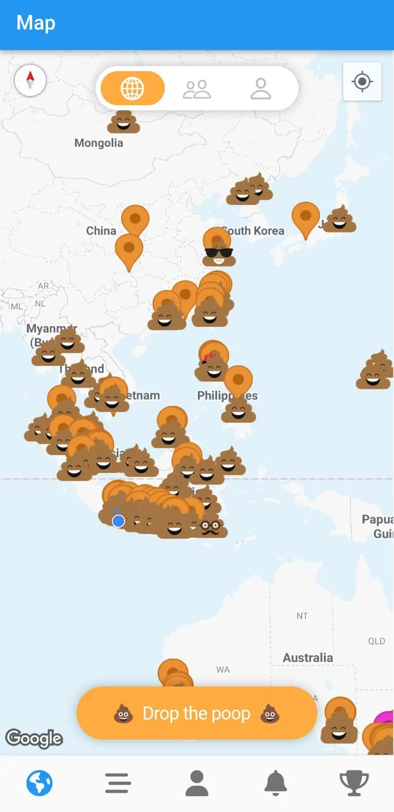 Aplikasi itu telah diunduh sebanyak lebih dari satu juta kali dan memiliki nama Poop Map. Poop Map adalah aplikasi media sosial unik yang memungkinkan pengguna untuk melacak dan berbagi lokasi mereka ketika buang air besar.