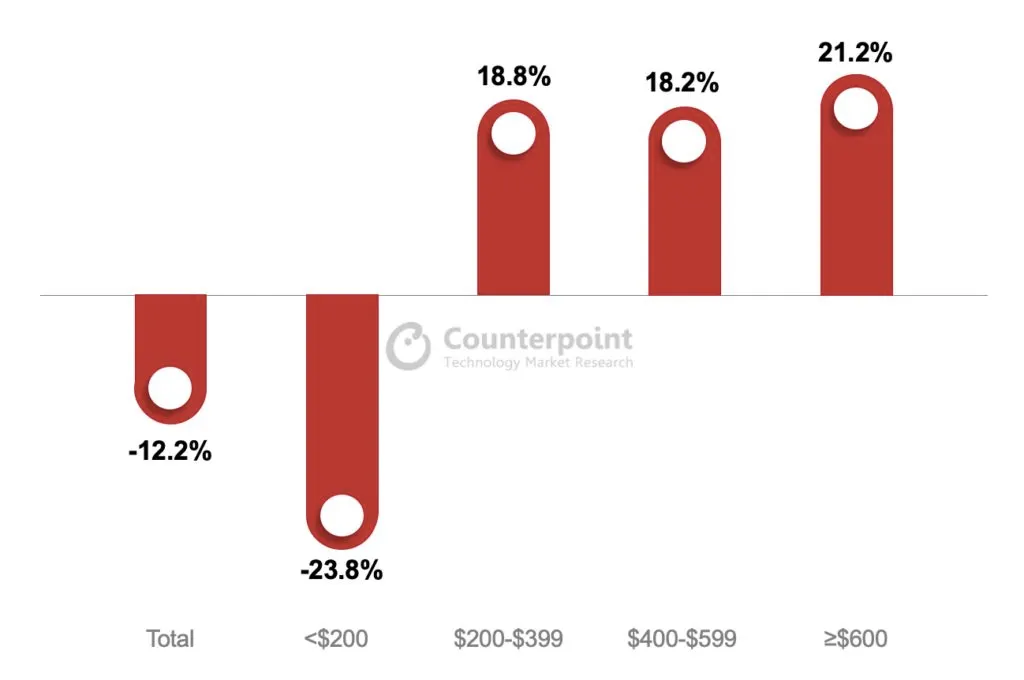 Menurut laporan yang dirilis oleh Counterpoint, 54,5% pengiriman smartphone premium pada tahun ini berasal dari model-model baru yang diluncurkan. Angka tersebut meningkat 45,8% dibandingkan dengan tahun sebelumnya.