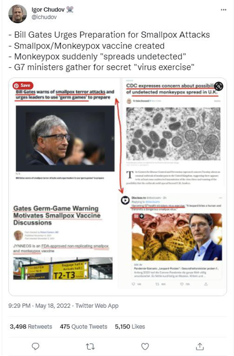 Konspirasi soal Bill Gates dan virus Monkeypox ini juga disenggol oleh Renee DiResta, technical research manager di Stanford Internet Observatory dalam cuitannya di twitter.