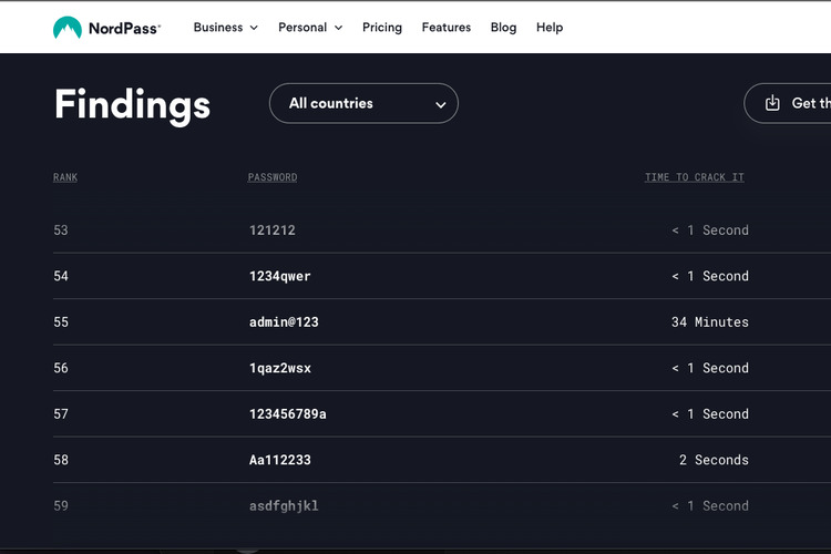Menurut NordPass, penyedia layanan password manager, kata "admin" dan angka "12345" termasuk dalam password yang paling banyak dipakai dan mudah dibobol.