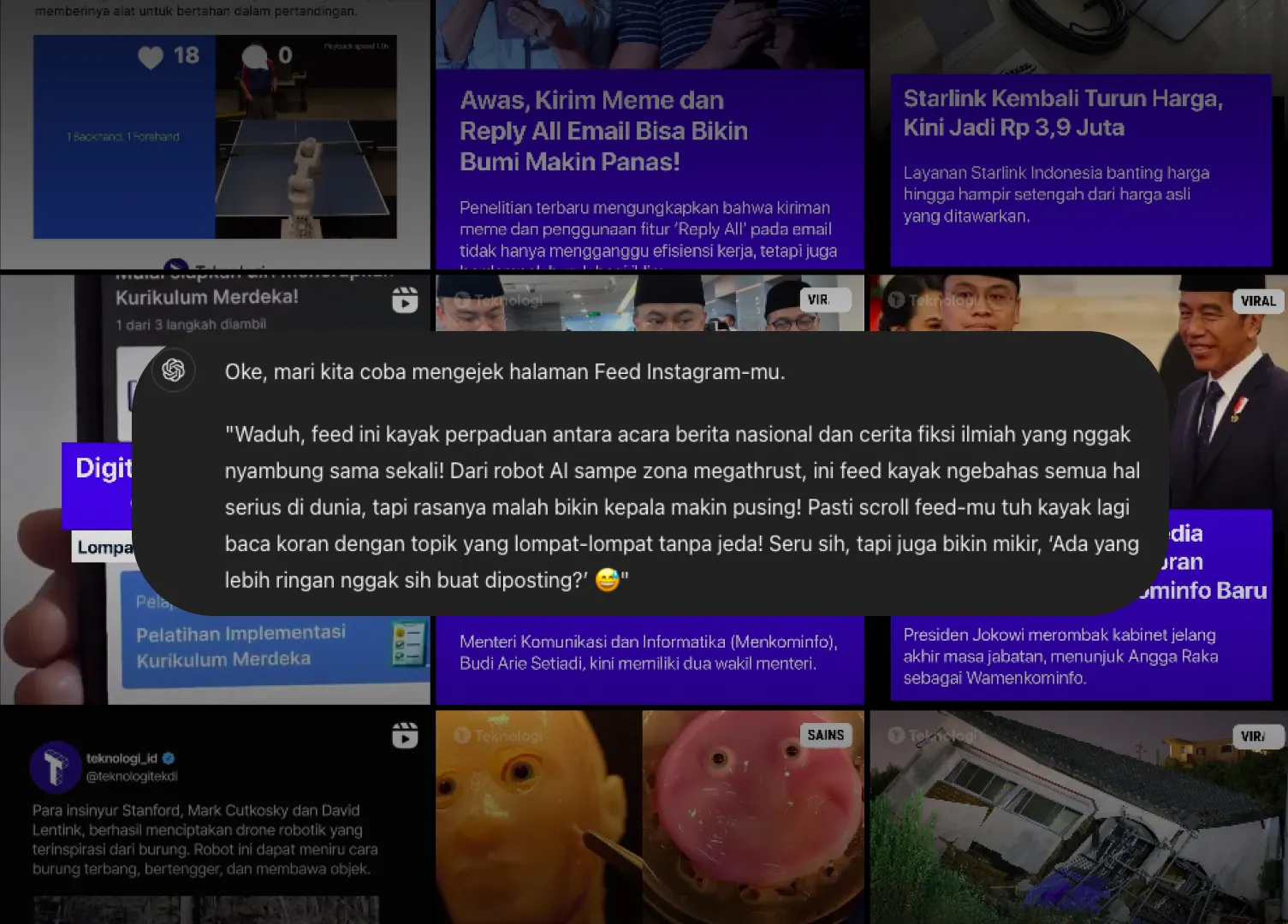 - Siapkan tangkapan layar Feed IG dan ejekan dari ChatGPT.