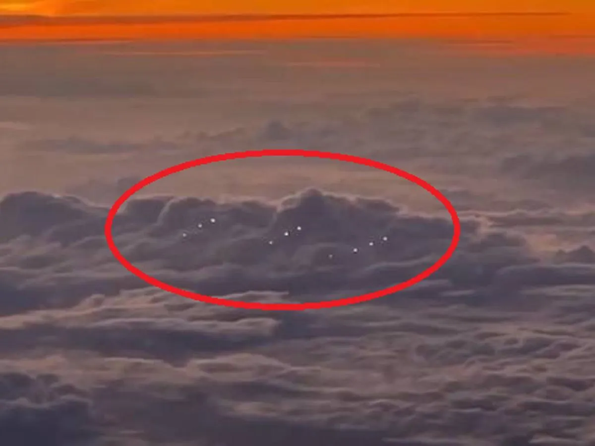 Dalam video yang beredar, terlihat tiga baris benda bersinar terbang dengan kecepatan yang sama di atas awan, masing-masing baris ada sekitar 4 obyek, dan tidak dapat teridentifikasi jenis pesawatnya.