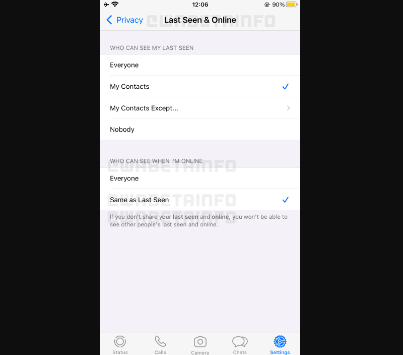 Pengguna akan bisa menyembunyikan status online-nya lewat opsi 'Last Seen & Online' yang ada di pengaturan privasi. WhatsApp menyediakan dua opsi baru yaitu 'Everyone' dan 'Same as Last Seen'.