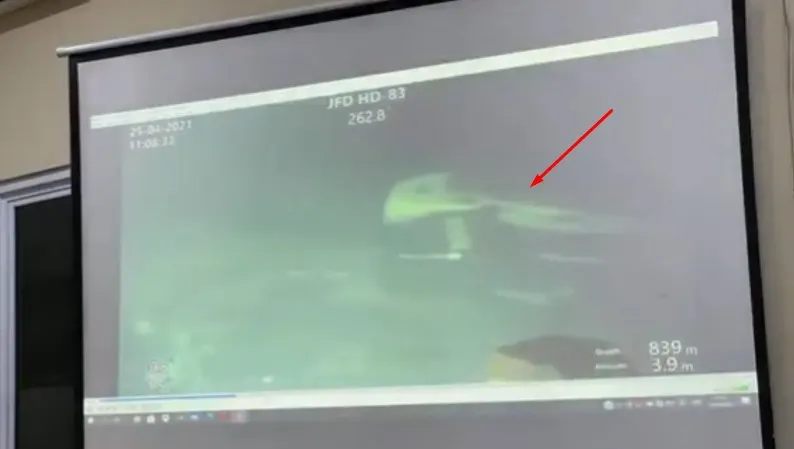 "Dan pukul 09.04 WITA, ROV Singapura dapatkan kontak visual pada posisi 07 derajat 48 menit 56 detik selatan dan 114 derajat 51 menit 20 detik timur, tepatnya dari datum satu tempat tenggelamnya KRI Nanggala berjarak kurang lebih 1.500 yard di selatan, pada kedalaman 838 meter terdapat bagian-bagian dari KRI Nanggala. Di sana KRI Nanggala terbelah jadi 3 bagian," kata Yudo.