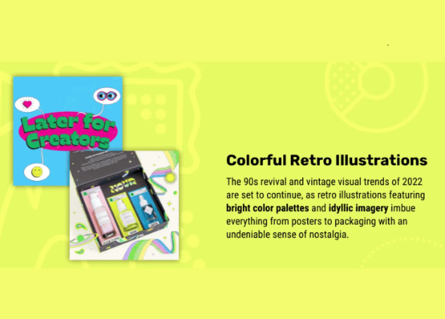 Gaya visual tahun 90-an yang melimpah di tahun 2022 akan berlanjut hingga tahun 2023, sehingga kita dapat mengharapkan lebih banyak ilustrasi dengan palet warna cerah retro di setiap sampul poster dan hal lain yang dijamin akan membangkitkan rasa nostalgia.