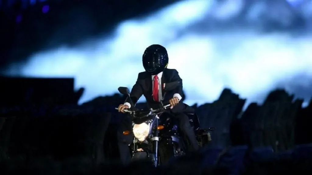 mobil, namun beberapa saat memperoleh laporan jika jalanan menuju Stadion Utama Gelora Bung Karno macet parah. Agar segera sampai, Jokowi akhirnya menaiki sepeda motor