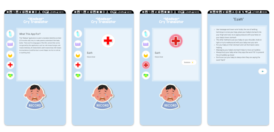 Aplikasi penerjemah tangisan bayi bernama "Madsaz" tersebut menggunakan algoritma machine learning untuk menganalisis pola tangisan bayi dan memberikan informasi kepada orang tua tentang kemungkinan penyebab tangisan bayinya.