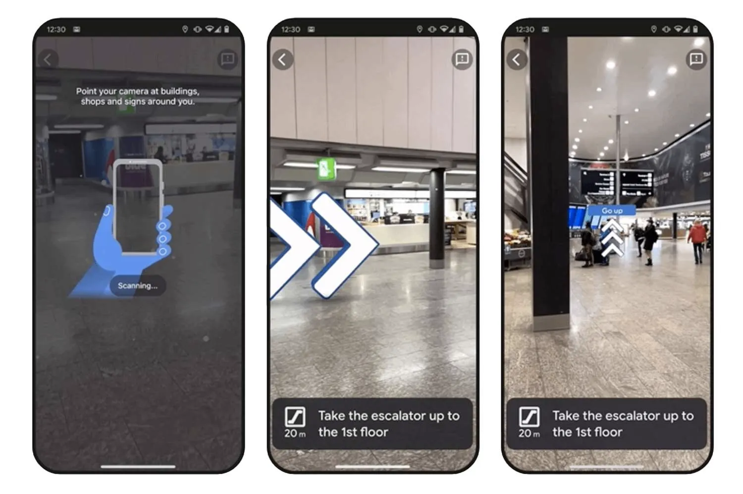 Fitur Indoor Live View, yang pertama kali diluncurkan pada tahun 2021, menggunakan panah bertenaga AR untuk mengarahkan Anda ke arah yang benar sehingga Anda dapat dengan cepat menemukan toilet terdekat, lounge, pangkalan taksi, persewaan mobil, dan lainnya.