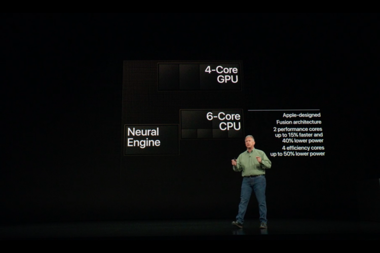 Jika dijelaskan, dalam satu prosesor terdapat 4-core GPU, 6-core CPU dan Neural Engine. Tiap core CPU A12 diklaim mampu menjalankan program 15 persen lebih cepat ketimbang A11, sementara GPU nya 50 persen lebih baik.
