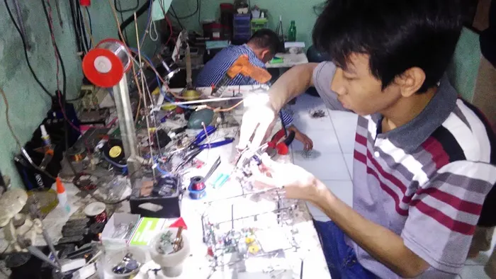Dari tangan dinginnya, anak muda asal kampung Cilegong Utara, Desa-Kecamatan Jatiluhur, Purwakarta, Jawa Barat ini sudah menghasilkan lebih dari 10 robot minimalis bentuk serangga dan mobil.