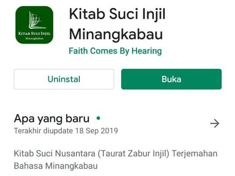 Teknologi.id - Beberapa waktu lalu masyarakat Aceh digemparkan dengan adanya aplikasi "Kitab Suci Aceh" di Google Play Store. Kali ini masyarakat Sumater Barat yang dihebohkan dengan munculnya aplikasi "Kita Suci Injil Minangkabau".