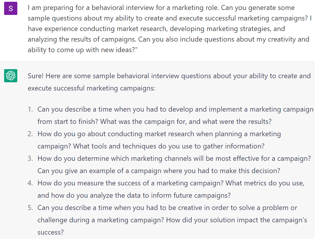 ChatGPT juga dapat membantumu menjawab pertanyaan-pertanyaan tersebut. Cukup salin salah satu pertanyaan dan tanyakan: