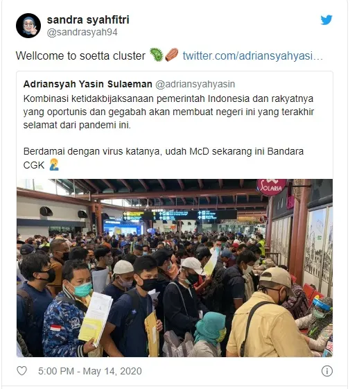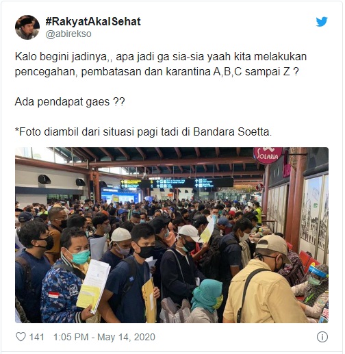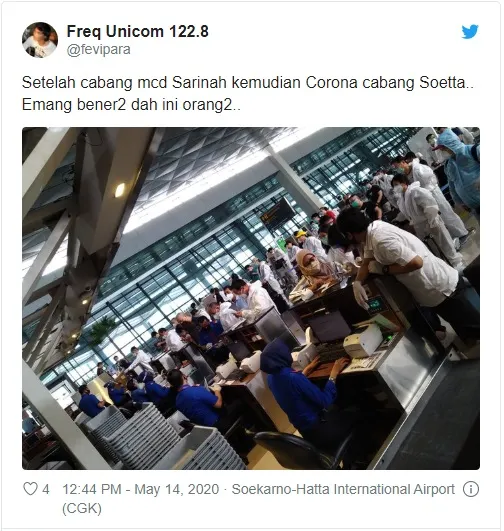 Teknologi.id - Jagad Twitter digegerkan dengan beredarnya foto kerumunan calon penumpang yang 'membludak' di Bandara Internasional Soekarno-Hatta hari ini, Kamis (14/5).
