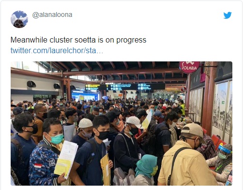 Menurut PT Angkasa Pura II (AP II), foto yang beredar merupakan antrian calon penumpang pesawat yang berdesakan untuk menyerahkan berkas persyaratan di posko pemeriksaan dokumen perjalanan di Terminal 2 Bandara Internasional Soekarno-Hatta.