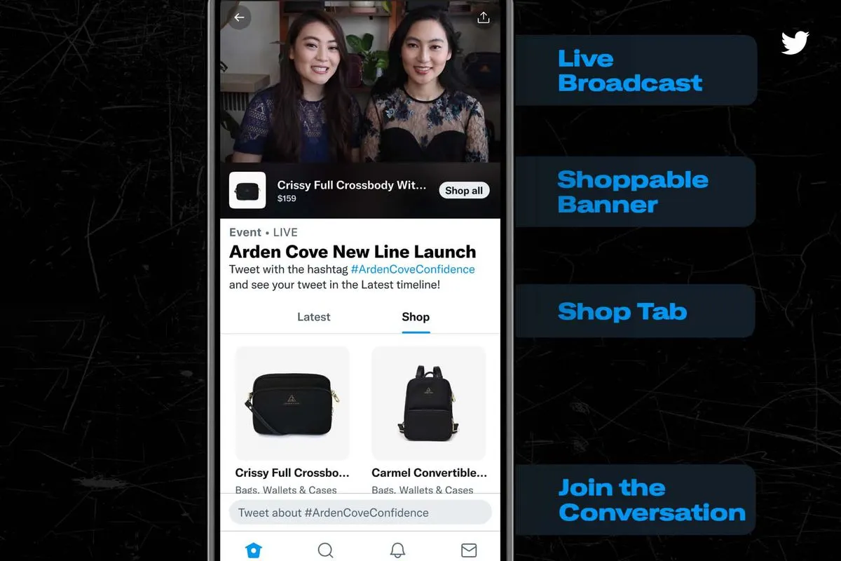 antarmuka belanja langsung Twitter dibagi antara streaming langsung video,