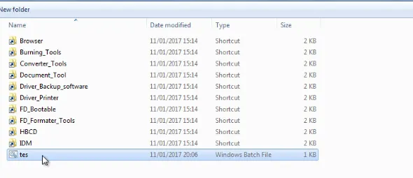 - Kemudian, masukan file yang menggunakan ekstensi *.bat tadi ke dalam flashdisk dan jalankan dengan mengklik dua kali file tersebut