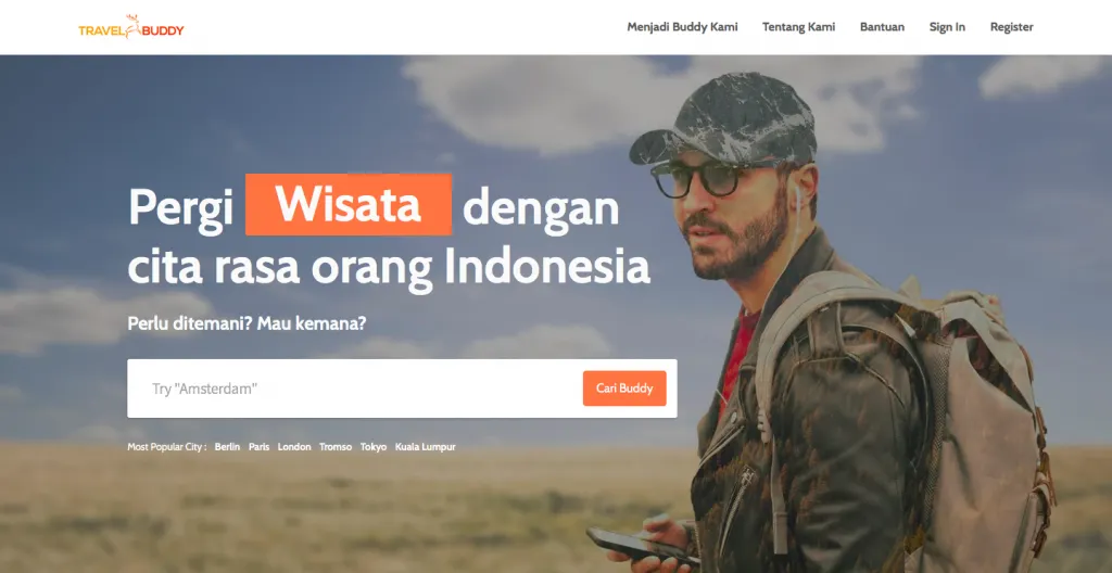Travel Buddy merupakan platform untuk mempertemukan orang Indonesia yang ingin ke luar negeri dengan orang Indonesia yang tinggal di negara tersebut untuk membantu mereka sebagai pemandu.