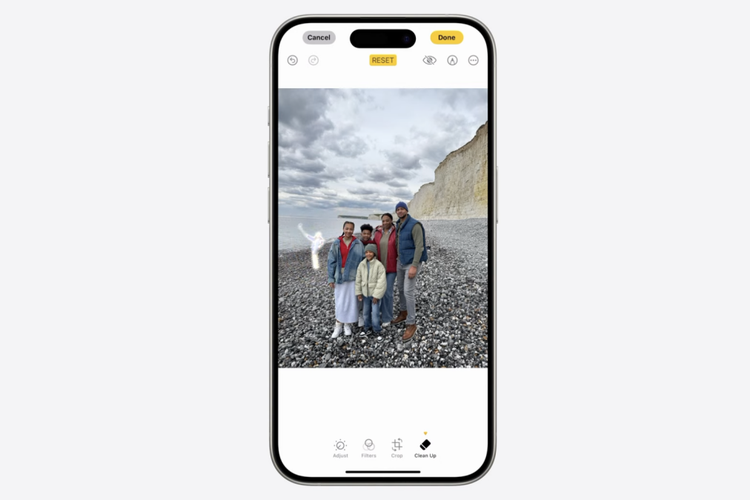Pengguna bisa menghapus objek yang tidak diinginkan, tanpa melalui apalikasi pihak ketiga. Fitur ini diberi nama Clean Up. Fungsinya sama seperti Magic Eraser yang ada di smartphone Android. Google sudah memperkenalkan Magic Eraser ke Pixel 6 dan Pixel 6 Pro pada 2021. Alat edit ini memungkinkan pengguna menghapus objek atau orang tertentu yang tidak diinginkan muncul ke frame foto.